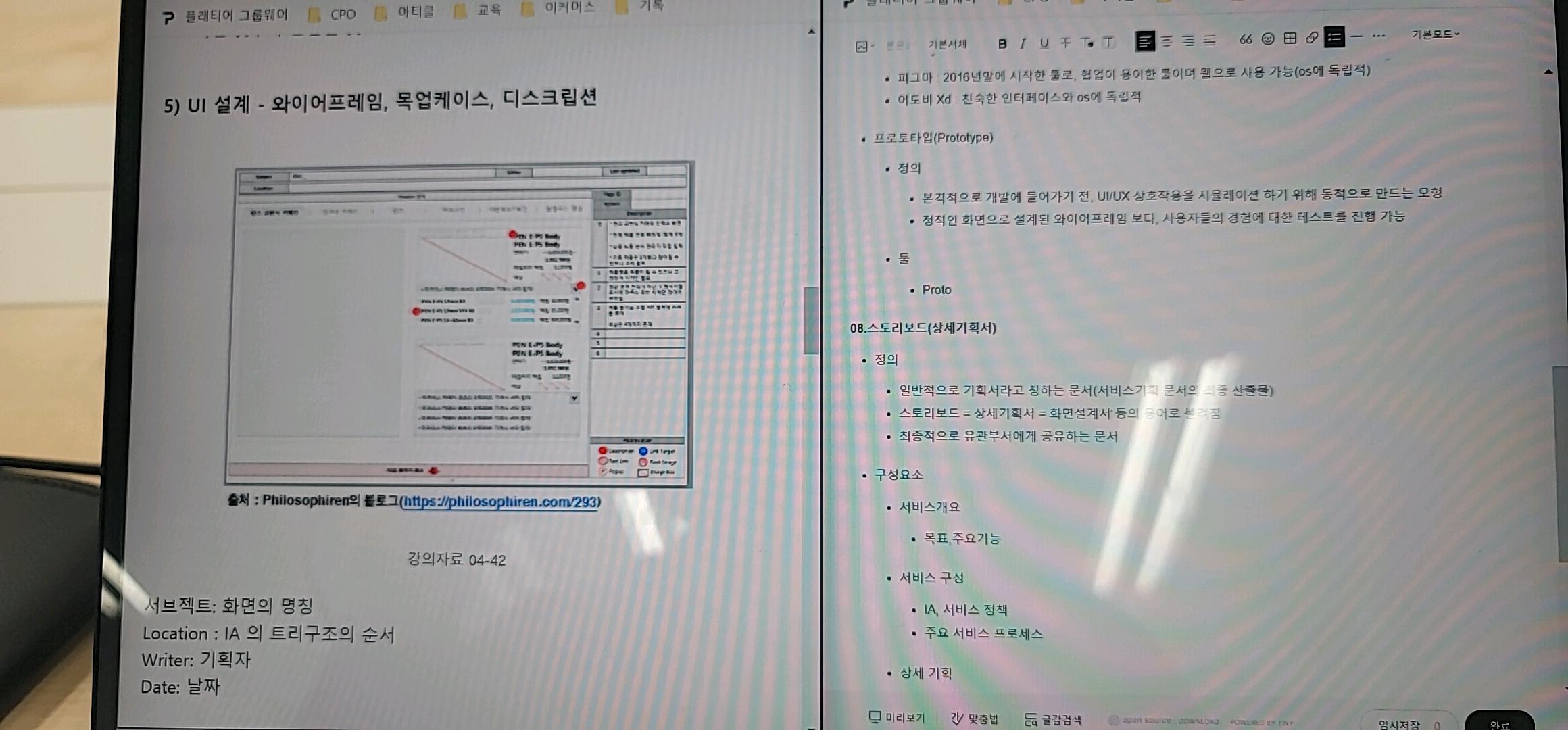 - 스토리보드 = 상세기획서 = 화면설계서 등의 용어로 불려짐